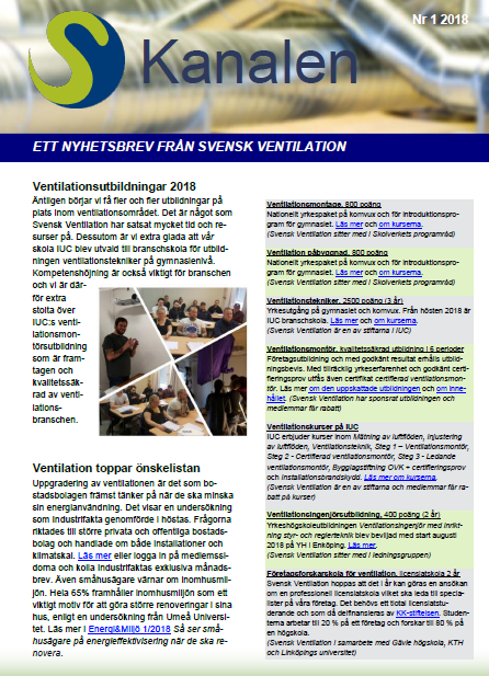 - Ventilationsutbildningar 2018