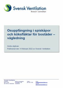 Utgiven 14 februari 2022 000 https://www.svenskventilation.se/publikation/osuppfangning-i-spiskapor-for-bostader-vagledning/Vägledningen riktar sig till de som tillverkar och marknadsför spiskåpor, men syftet är att underlätta för beställarna att välja produkter (spiskåpor och köksfläktar) och lösningar (luftflöden, installationshöjder etc) som för bort matos ur bostadskök. Den anger att man bör redovisa osuppfångning under förhållanden som ligger nära svensk praxis, och därmed göra vissa avsteg från europeisk provningsstandard.