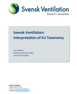 Detta dokument är Svensk Ventilations tolkning av EU taxonomin för tillverkande företag. Initiativet till arbetet togs av Styrgrupp Hållbarhet. Tolkningarna fokuserar på produkter för den europeiska marknaden.