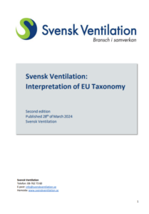 Detta dokument är Svensk Ventilations tolkning av EU taxonomin, second edition, för tillverkande företag. Initiativet till arbetet togs av Styrgrupp Hållbarhet. Tolkningarna fokuserar på produkter för den europeiska marknaden.